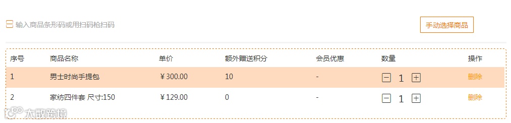 零售收银台既能支持店员扫码枪录入顾客购买的商品,也能通过手动搜索或从商品列表中选择商品。线上线下商品数据互通(比如售价、规格、库存等等),实现门店商品统一、高效管理。