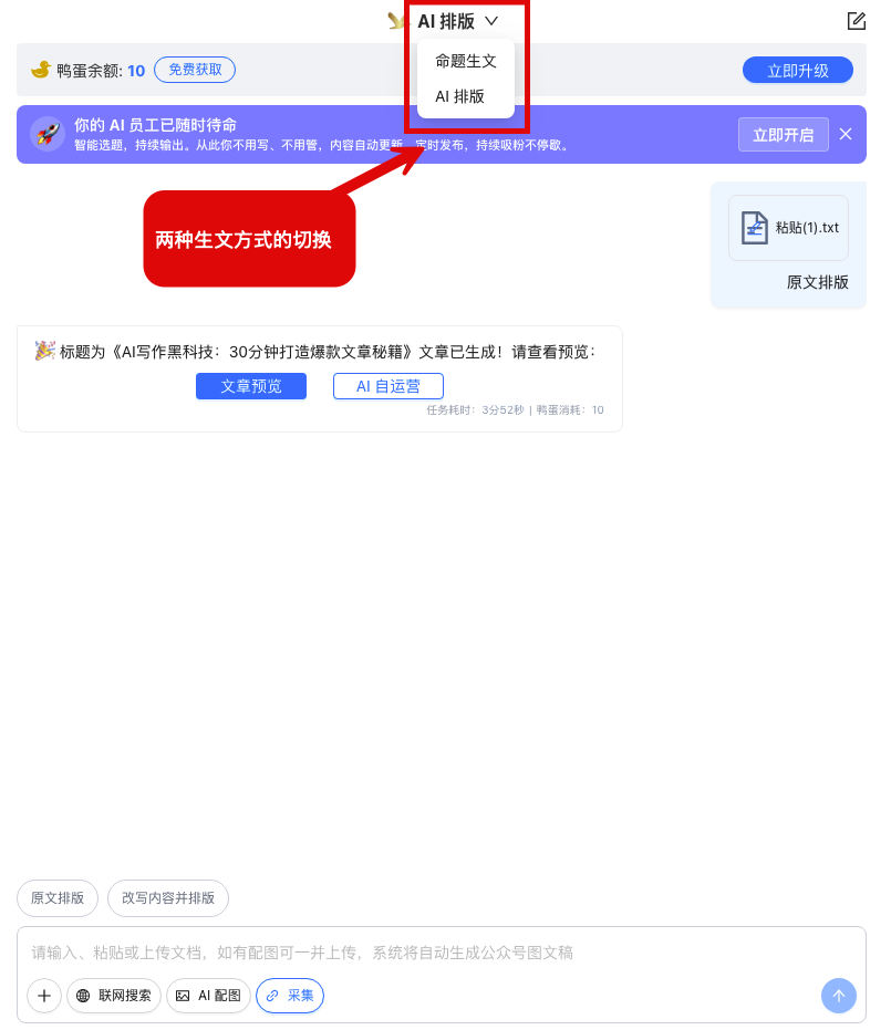 自动图文排版:支持原文排版、改写排版、AI配图,生成标准化、高质量公众号文章