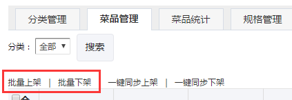 为了让商家更便捷地上架/下架菜品,我们在微餐饮的菜品管理中,新增批量上架/下架菜品功能。商户录入新的菜品后,无需一个个手动上架,勾选之后,选择批量上架即可,批量下架菜品同理,大大提升商家操作体验。