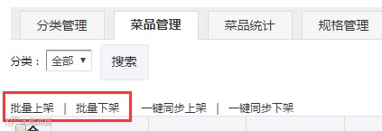 微餐饮中的菜品管理中,新增一键同步上架/下架功能,商户在微餐饮中上架/下架菜品可以直接同步到微外卖页面中,无需商家手动重复添加。此功能将令商家在微外卖中上架/下架菜品的效率得到提升。(备注:须在菜品设置中将菜品设置为支持外卖,才可以将其同步到微外卖。)