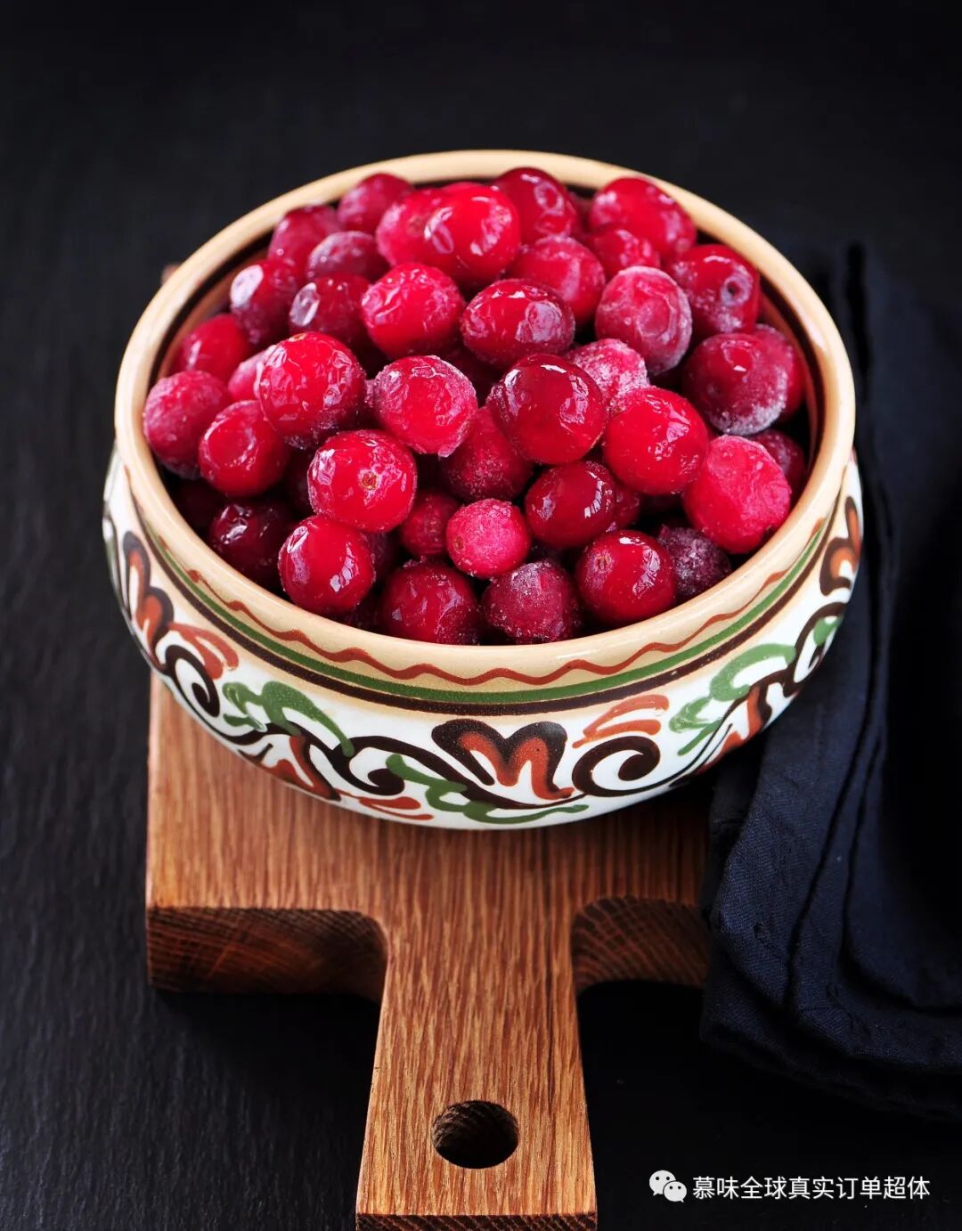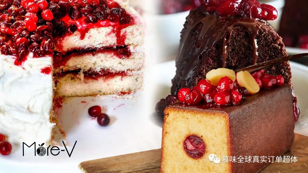 在讲究高颜值的烘焙市场中,蔓越莓展现出亮丽的红宝石颜色,令人赏心悦目。应用在甜品、糕点中甜而不腻,其中的酸度与微微苦涩感中和了甜品腻感,入口淡雅而又解腻。