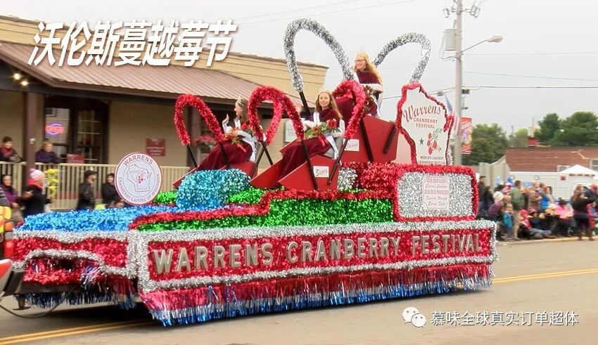 在威斯康星州举办的沃伦斯蔓越莓节是世界上规模最大的蔓越莓节,为期三天,期间会开展各项水果庆祝活动。活动内容包括蔓越莓沼泽之旅、相关艺术和手工艺品、古董和跳蚤市场、农贸市场、食品摊、周五晚上的炸鱼、周六晚上的牛排炸、以蔓越莓糖浆为特色的煎饼早餐、在大煎锅中烹制的蔓越莓禧年、最大的浆果比赛和一场盛大的游行。