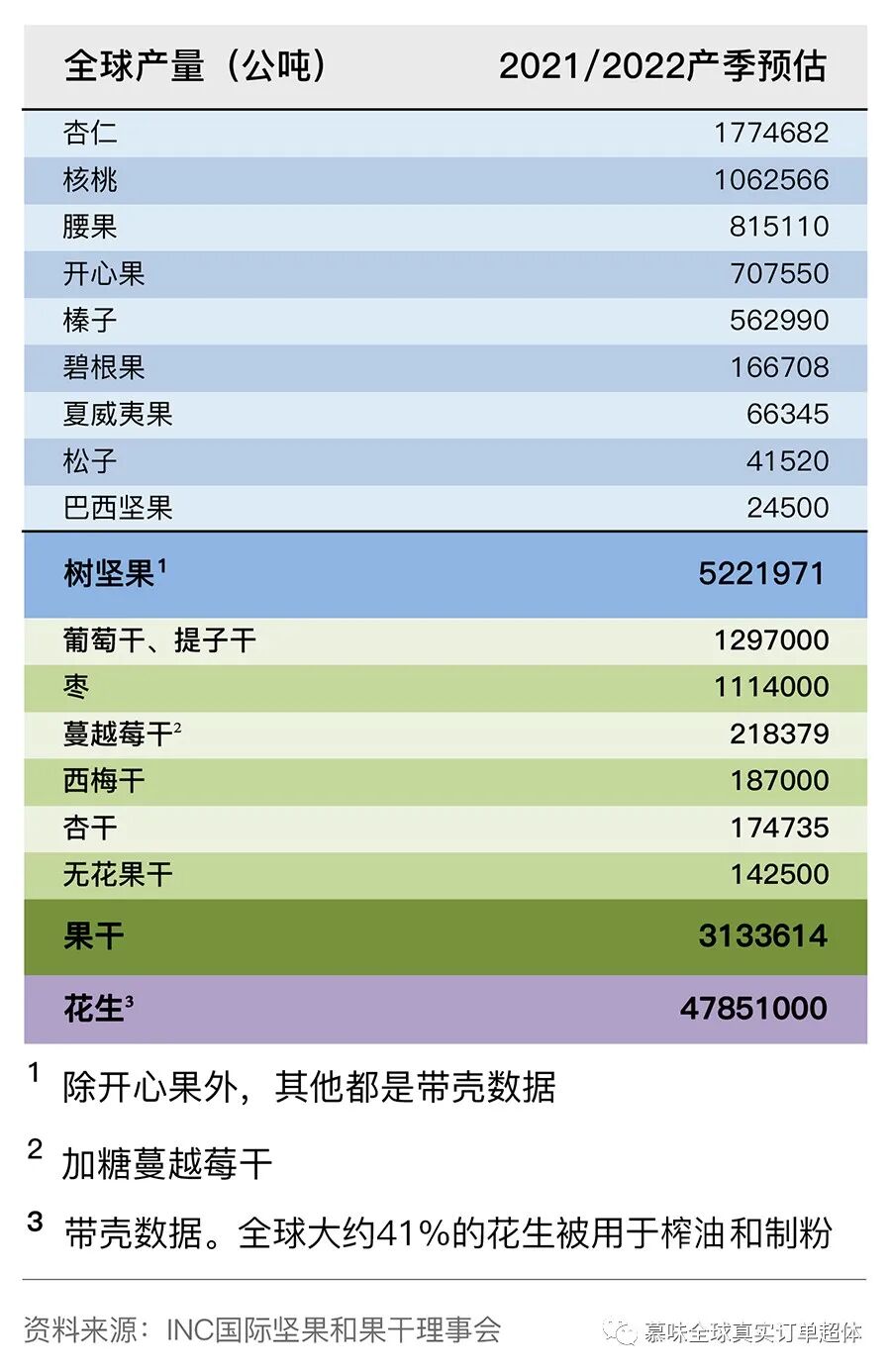从INC的数据来看,2021/22产季的果干坚果产量趋势向好,市场消费回暖,做为采购商来说将可为下一产季的采购提前做订货预热。