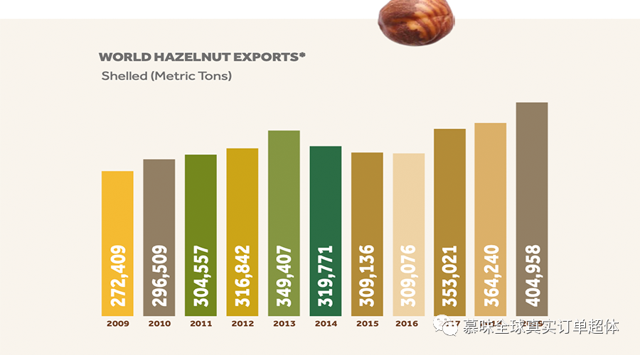 这不奇怪,榛子行情波动一直都存在,不可忽视的是其在中国市场的上涨趋势,从2009年的1350吨到2019年11313吨,增幅达738%。这说明卖榛子赚钱。