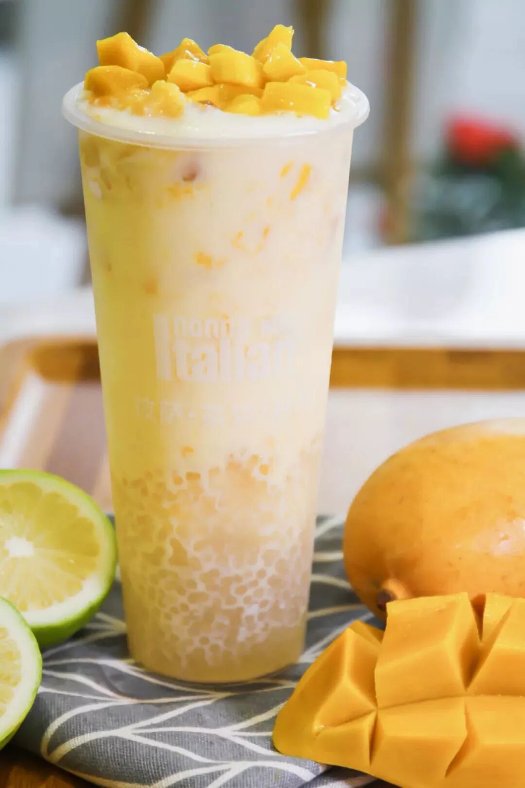 芒果是杨枝甘露的一大主要原料,也成为了芒果主题店无可争议的主推产品。杨枝甘露的口感体现在水果,奶香,酸甜度上面。排除可控因素,出品直接受新鲜芒果品质的影响。鲜芒果的季节性,口感不稳定的特征,对于将这款产品作为主推产品的店家,是一个很大的冒险,这也是检验一个店面口碑的重要标杆。加入少量“阿方索芒果泥”来制作杨枝甘露,弥补了新鲜芒果口感不稳定的缺点,也提升了整杯饮品的层次感。
