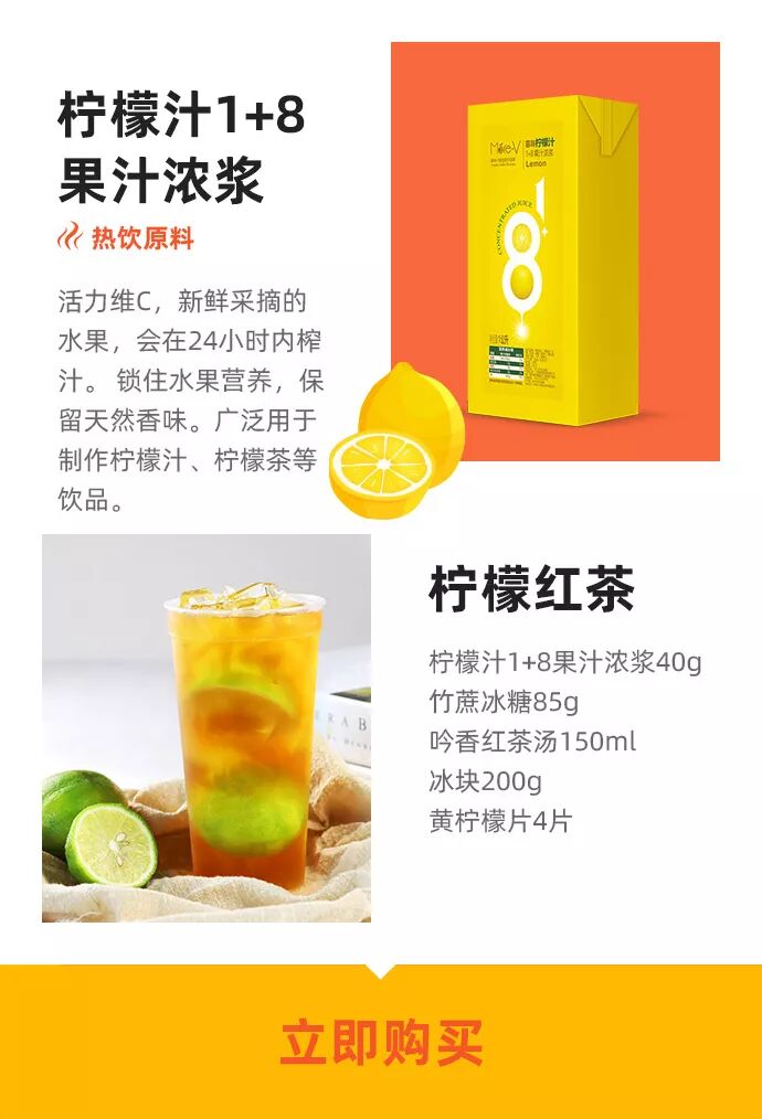 果汁——在冰饮水果茶中,添加果汁果酱来稳定整杯产品的风味,在热饮中建议选择水果还原度高的果汁,为整杯饮品提升整体的鲜度。