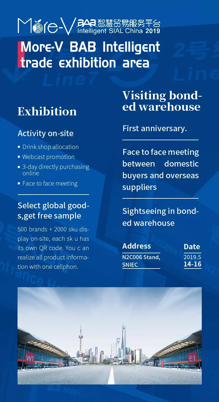 More-V as the value-added service provider of SIAL China will be held at N2 Hall in (SNIEC) Shanghai New International Expo Center on May 14th, 2019. All the audiences are welcome to visit N2C006 booth. More-V will provide more exciting highlights and opportunity to promote cooperative trading, the following is our guideline for participating in the exhibition, hope you can enjoy the exhibition efficiently and happily.