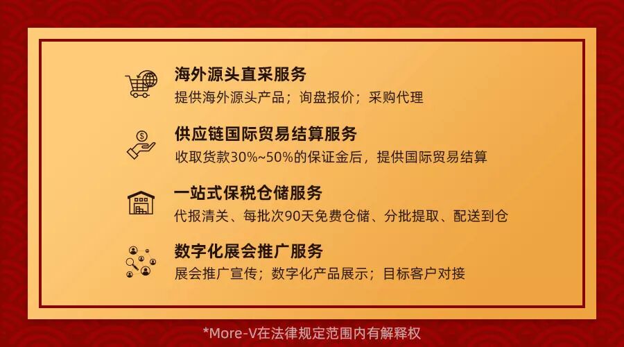 抚今追昔,感慨万千。我们在焦虑和不确定性中度过2019年,现在有理由期待2020年会让我们好起来。中国民众对质优价廉的商品和服务需求正在不断增加,巨大的国内市场将为各方提供足够的机遇,More-V将与1.1万海外源头供应商和30万中国买家携手并肩,拿出价格竞争力和品质竞争力,通过互联网+供应链服务+各个领域协同的全新商业模式,在新一轮进口食品的浪潮里突飞猛进!