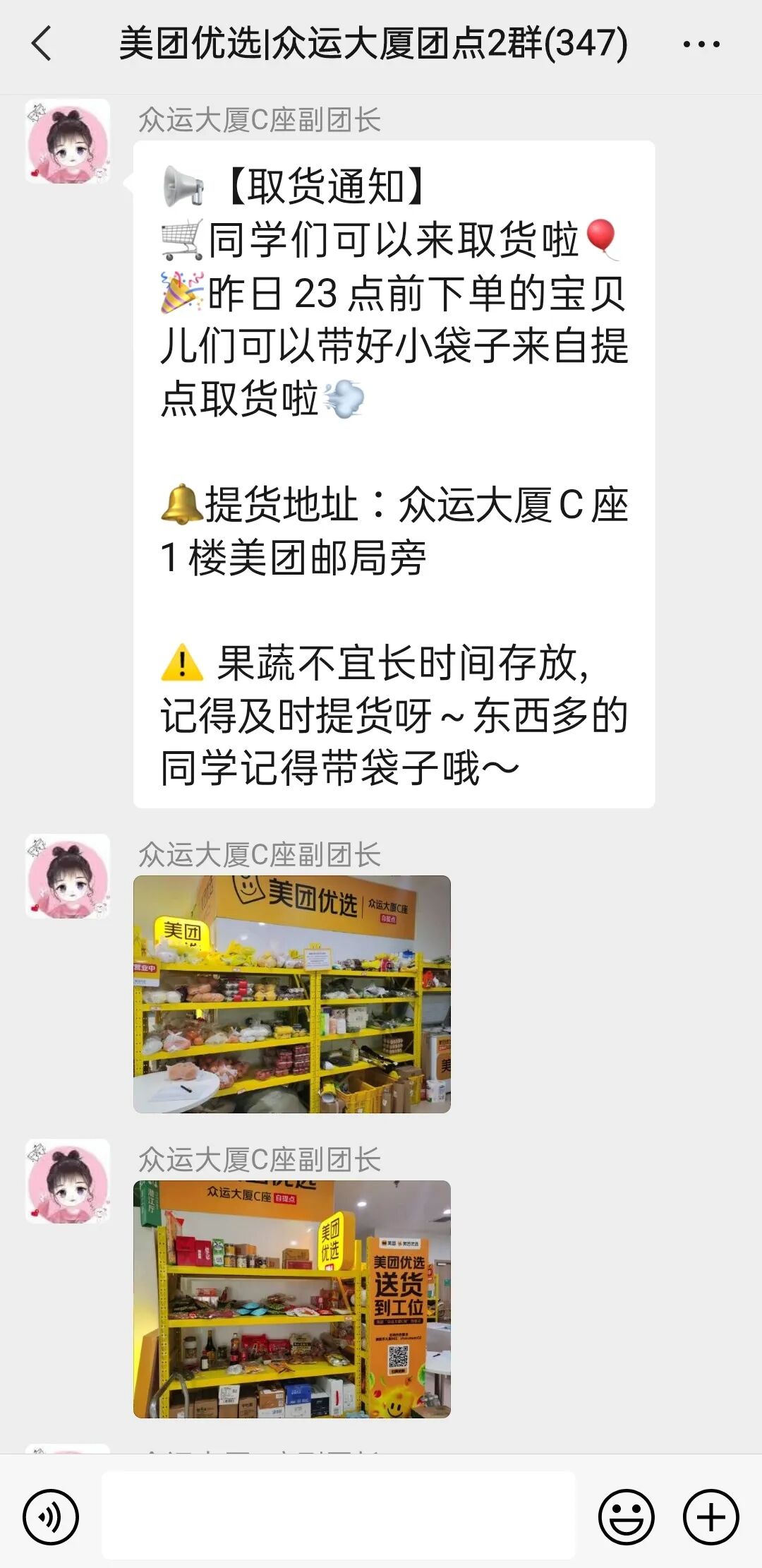 1.收货后,及时在团长端后台和用户群里做取货提醒,生鲜类商品需重点提醒要 当天取走。