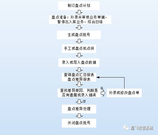 操作流程:1. 打开收银机后台软件2. 找到仓库管理,盘点流程3. 建立盘点号、选择盘点范围、选择盘点仓库