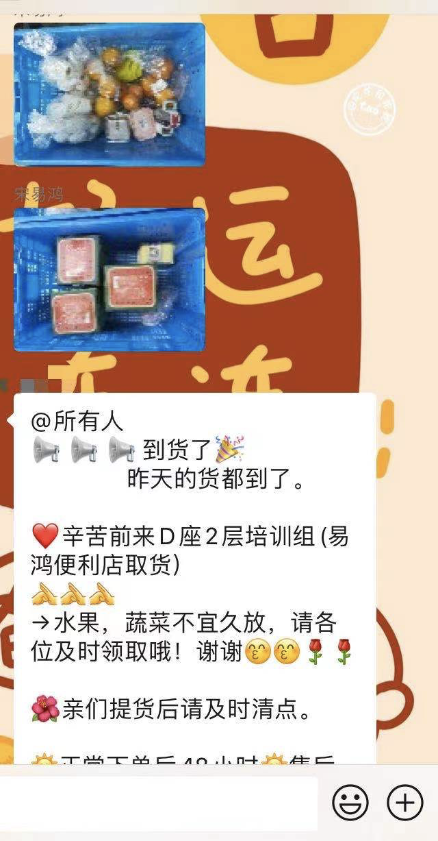 如果您的自提点,有人下单了之前从来没有人下单的商品种类,比如鲜花、绿植等,那么您可以拍个实物视频或图片,在群里艾特下单的顾客,提醒她来拿货,并且在群里趁机夸一夸商品。