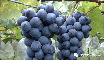 外观:果穗圆锥形或有歧肩,果实容易着色且上色一致。果皮紫黑色,果粉厚