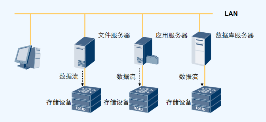 在一些特殊应用服务器上,如微软的集群服务器或某些数据库使用的原始分区,均要求存储设备直接连接到应用服务器。