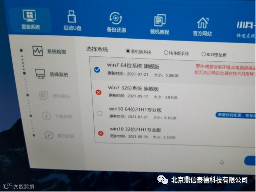 3.在“系统选择界面”,选择“Win7 64位系统旗舰版”,开始下载系统文件