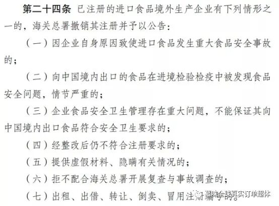 海关总署发现已注册进口食品境外生产企业不再符合注册要求的,将会责令其在规定期限内进行整改,整改期间暂停相关企业食品进口。