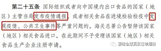举例,某个国家被世界动物组织(OIE)通报了相关动物疫情,那么海关总署会公告暂停该国相关动物及其动物产品(肉类)进口,那么在暂停期间该国肉与肉制品生产企业的注册申请将不予受理。