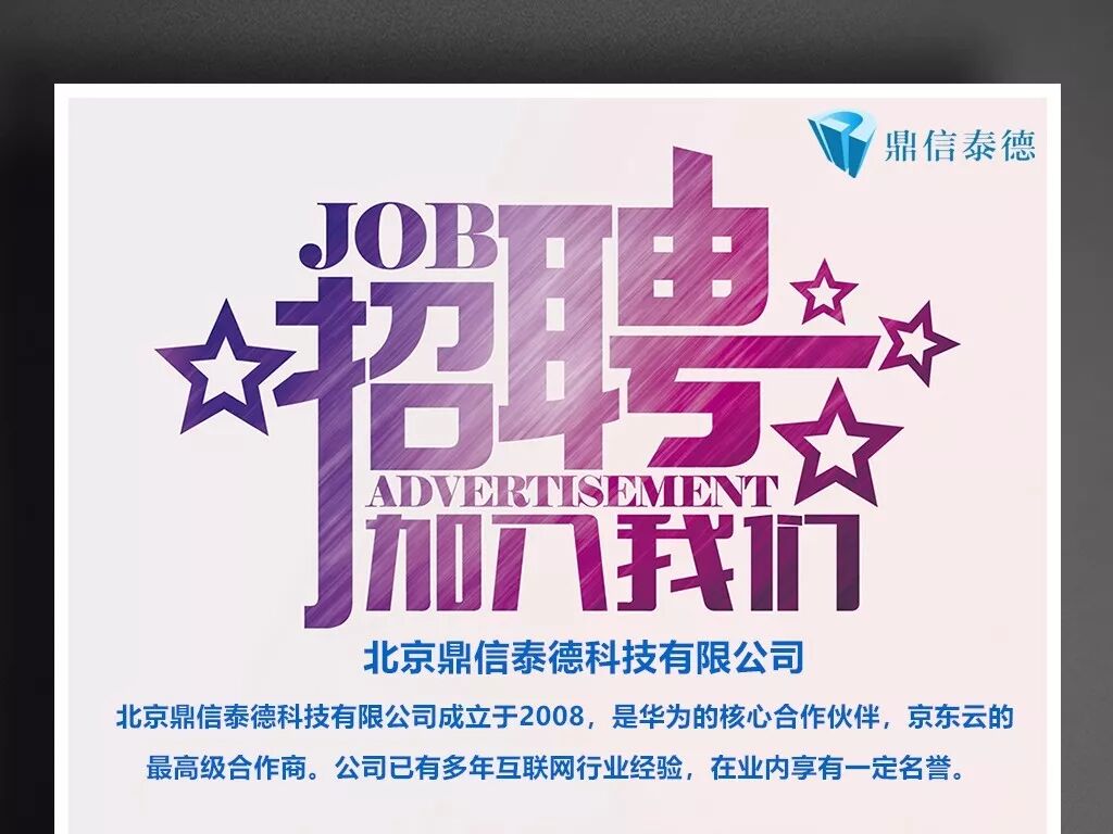 北京鼎信泰德科技有限公司:成立于2008年,注册资金2000万元,北京市高新技术企业、华为服务器、存储金牌代理商、IT CSP三钻服务商、华为全产品线认证经销、华为云优选经销商、京东云最高级别合作商、阿里云经销商。