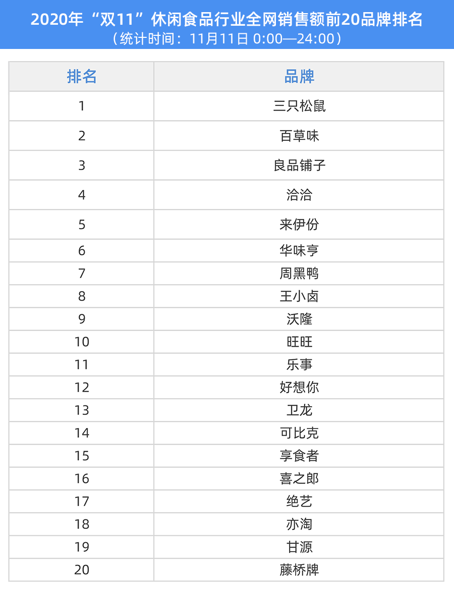 第三届进博会10日刚刚闭幕,与“双十一”最高潮的狂欢之夜“无缝链接”。在构建双循环新发展格局的背景下,我国消费市场持续扩张,“双十一”进口品牌和国货双双“飘红”。从双十一当天热门品类之一的休闲食品行业来看,三只松鼠、百草味及良品铺子全网销售额排名前三。前20品牌还有洽洽、来伊份、华味亨、周黑鸭、王小卤、沃隆、旺旺、乐事、好想你、卫龙、可比克、享食者、喜之郎、绝艺、亦淘、甘源、藤桥牌。这一波消费超出了大部分“采购人”的预期,果干坚果零食类产品依然受消费者喜爱,就目前消费热潮来看,早期国内存货即将消耗殆尽,进口食品原料市场步入“紧俏”周期。