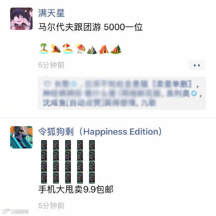 ▎除了天桥上,市场里,地铁口,有人在朋友圈也做起了云摆摊儿,什么网吧啊,打地鼠啊,甚至还做起了旅游。