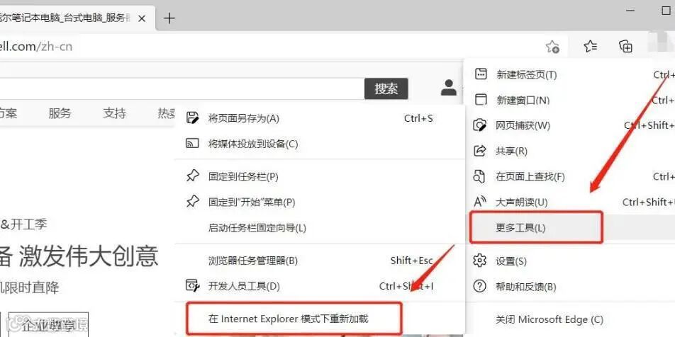 ⭕如果是Edge 92及更早版本,菜单路径是【更多工具】→【在Internet Explorer模式下重新加载】,其操作逻辑完全一样。