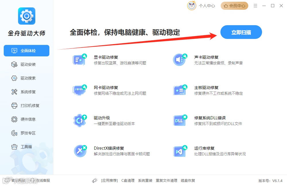 金舟驱动大师 官网下载:https://www.callmysoft.com/driver?loadPromotion=sFhMx80MHp0ae2TL
