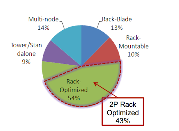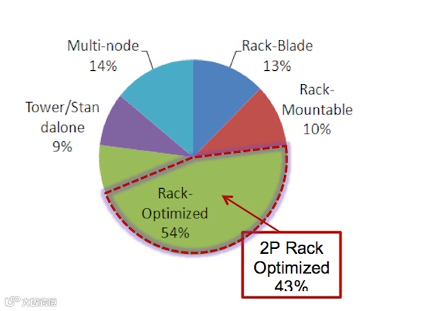 上图是2P 机架服务器在服务器整体市场占比情况,亲,你们看到红框中的数据了吗?43%。这对华为这样的服务器厂商是绝对的诱惑。