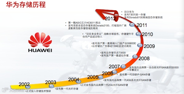 从2002年到2014年,华为在存储领域的投入有目共睹,“华为存储经历了10年的发展,建立了齐全的存储产品线,SAN产品作为最主要的存储产品,华为拥有从入门到高端的全系列FC SAN、iSCSI产品线。”