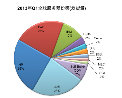 首 先,我们可以看到以上的两张来自Gartner (2013 Q1)的数据,从其数据统计和华为公开的 X86服务器市场的整体情况资料来看,华为服务器中国发货量进入前三。从全球份额看,占比2%。“随着今年全球拓展步伐的加快,相信我们的排名也会不断前 进。”这是华为服务器产品经理周哲的信心十足的想法。