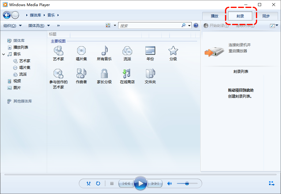 我们以Windows Media Player为例,讲解系统自带工具如何刻录音乐光盘。