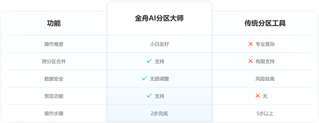 金舟AI分区大师这款工具可不是花架子,它针对日常痛点提供实用解决方案: