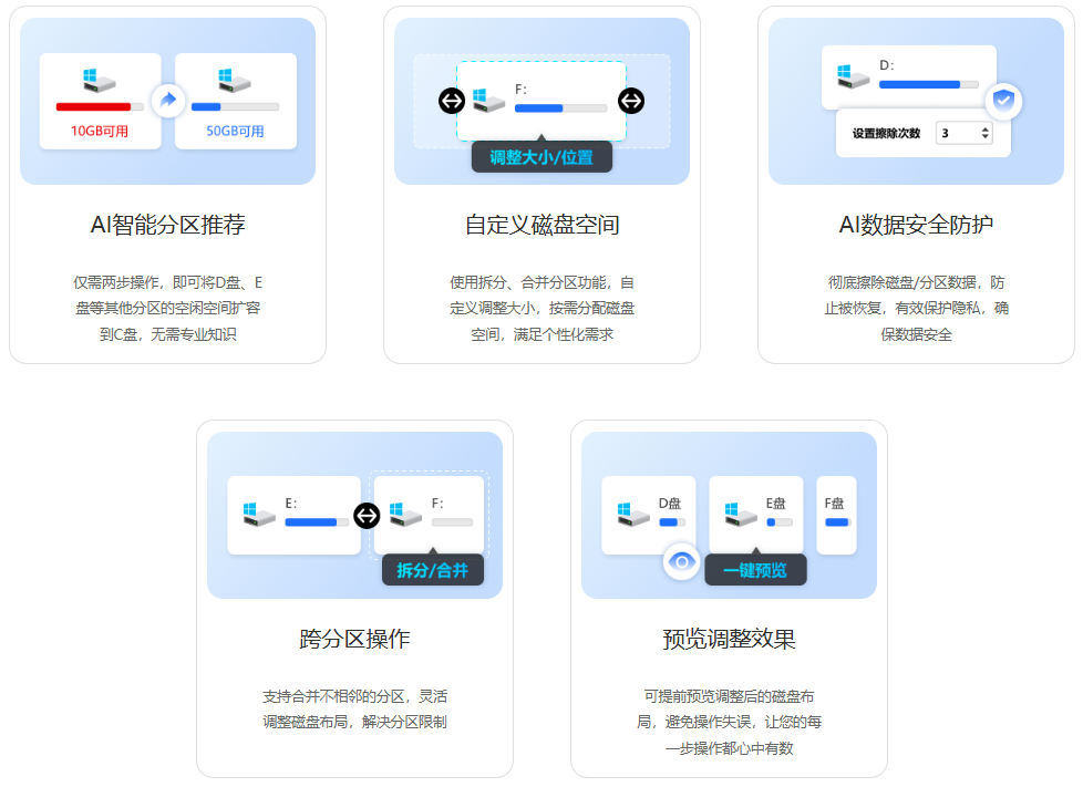 金舟AI分区大师覆盖多种常见场景,看看您是否中招: