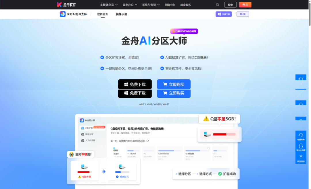 通过金舟AI分区大师,C盘扩容不再是难题。无需专业知识,几步操作就能释放空间,让电脑恢复活力。赶紧试试吧,体验顺畅的系统运行!