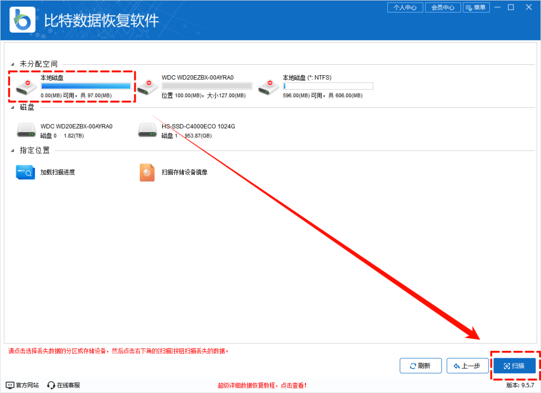 🟦操作步骤:以“比特数据恢复软件”为例,讲解电脑数据恢复操作步骤
