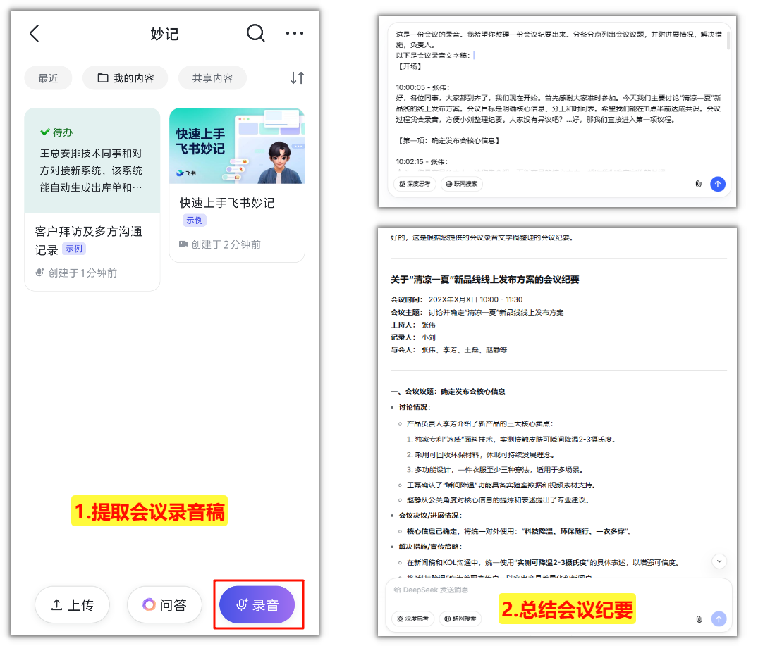 将完整的文字稿交给DeepSeek生成标准会议纪要
