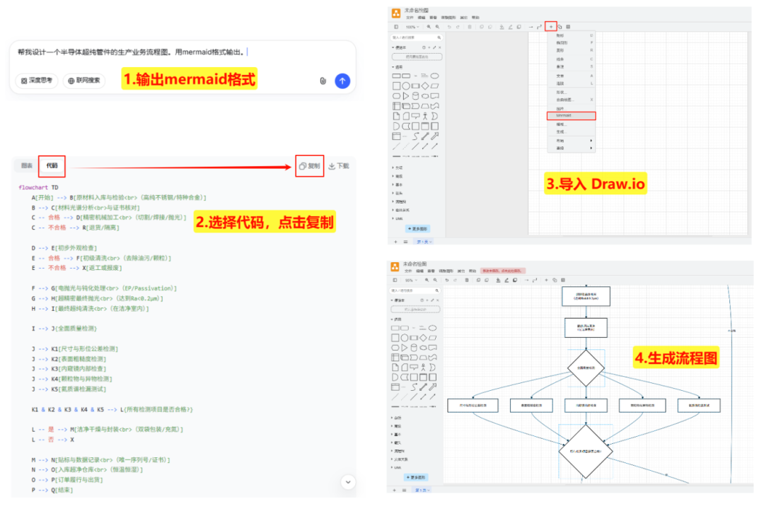向DeepSeek描述你的需求,并要求它最终以mermaid格式输出