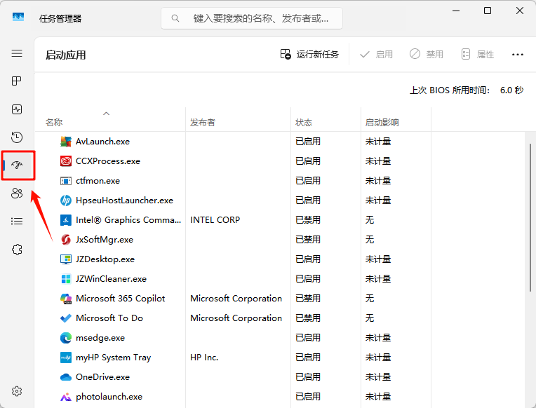 1.按住「Ctrl+Shift+Esc」启动任务管理器,切换到「启动应用」页面