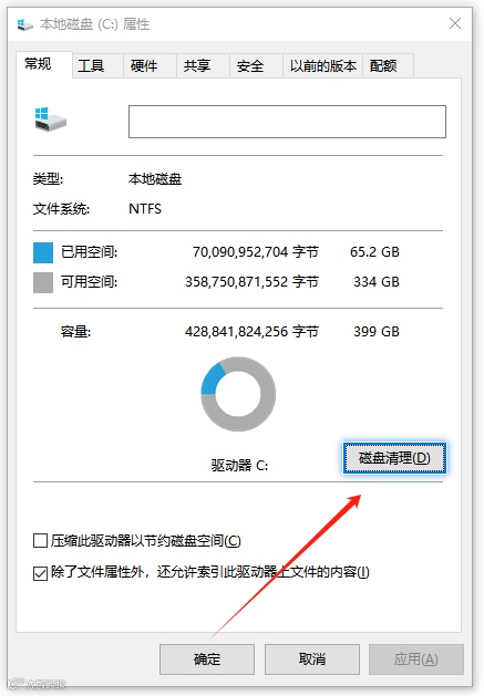 第1步:在C盘上点击右键 -> 选择 “属性” -> 在“常规”选项卡下点击 “磁盘清理”。