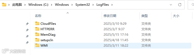 路径:C:\Windows\System32\LogFiles (需要管理员权限)。里面的子文件夹内容通常可以删除。如果遇到权限问题,可暂时跳过或使用工具清理。
