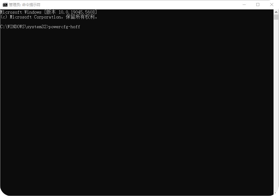 cfg-hoff”并回车,即可禁用休眠文件。