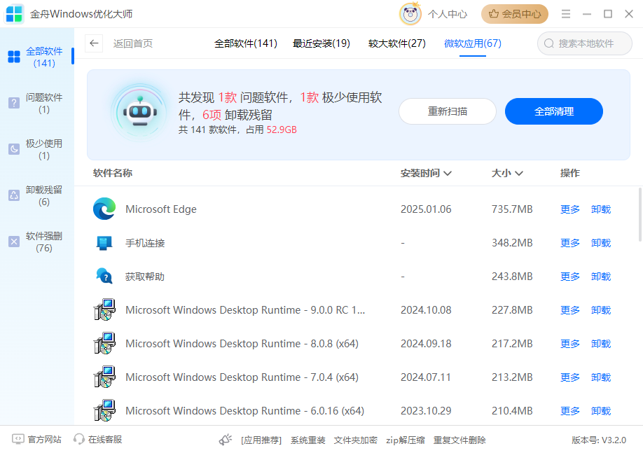 推荐强制卸载软件工具:金舟Windows优化大师