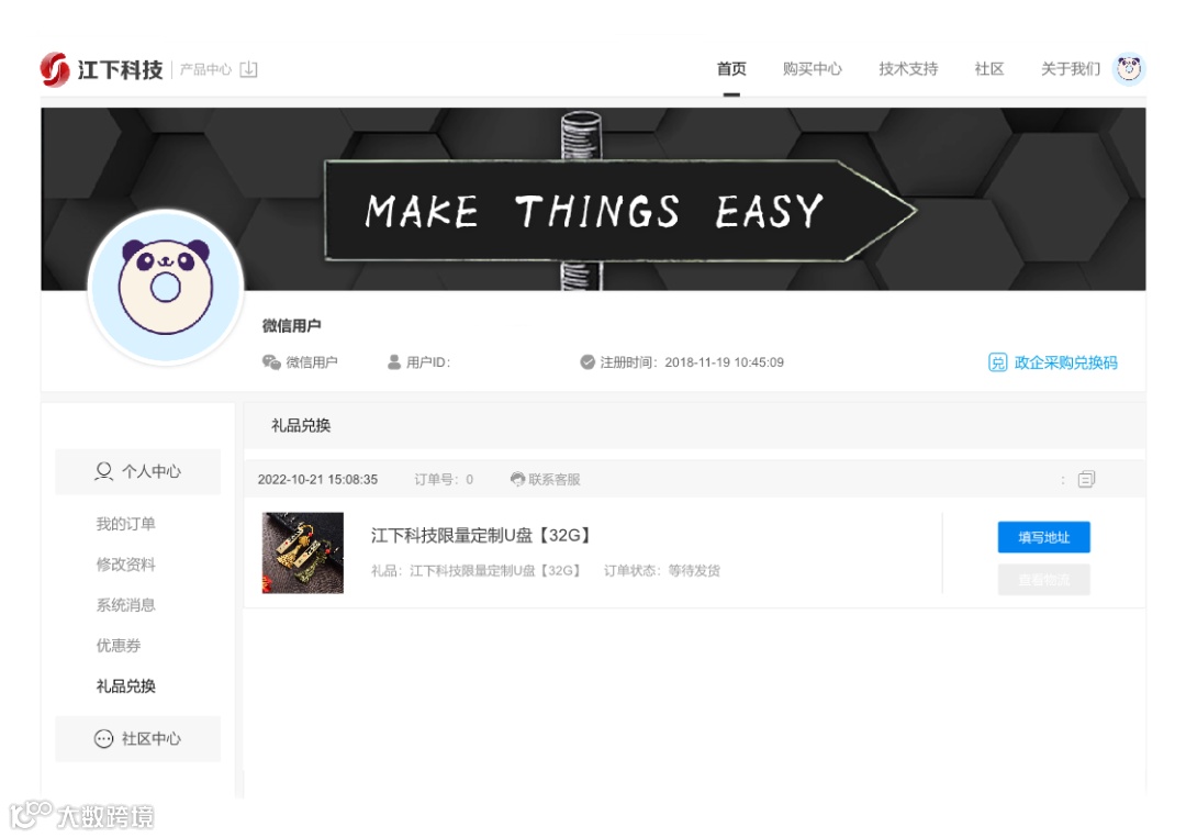 Ø购买后,在“个人中心”填写收货地址 ↓