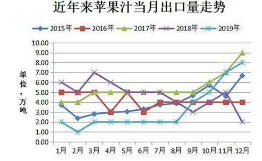 统计数字显示,波兰于2019年10月出口了15400吨NFC苹果汁,比该国2018年10月份的出口量多了2000吨。不过目前NFC苹果汁的价格还是很难确定是否要走高。