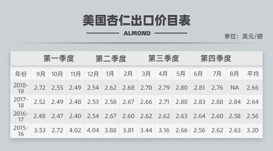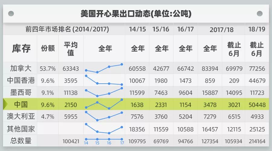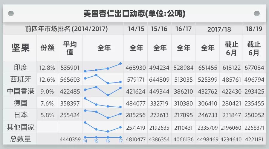 就Austrailan Almonds数据显示:出口到中国杏仁数量相比上一个同年季度增加1492%,澳洲与中国签订自由贸易协议,加上贸易战带来对杏仁市场冲击,使澳洲外销中国的杏仁有爆炸性增长。