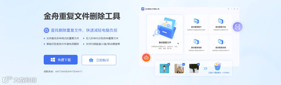 金舟重复文件删除工具是一款能强大的电脑重复文件清理软件,可以帮助我们精准的搜索出电脑中重复的文件内容,快速净化磁盘节省出一定的空间大小。软件扫描到的文件都能非常详细显示文件的大小、格式、属性等相关参数,并且还支持所有文件格式,软件操作起来也非常方便,一键智能选择重复文件点击即可删除