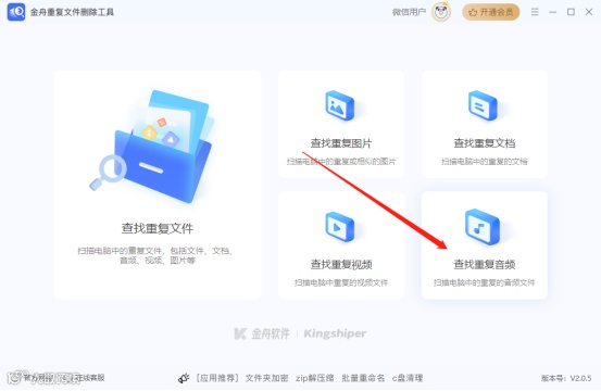 第一步、电脑双击运行,根据需要选择需要整理的文件类型,这里以“查找重复音频”为例