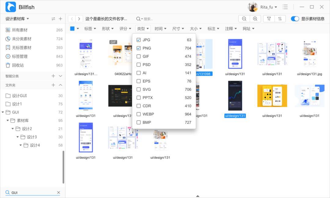 Billfish素材管理工具完美解决设计师这一囧境,Billfish是专门为设计师打造的图片收藏管理工具,可以轻松管理您的各种素材文件。Billfish是一个免费的软件,支持对大量的图片素材进行管理,提供多种快速的检索筛选功能,如颜色,格式,方向,日期等。
