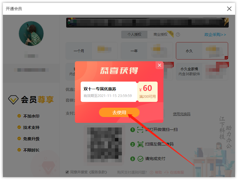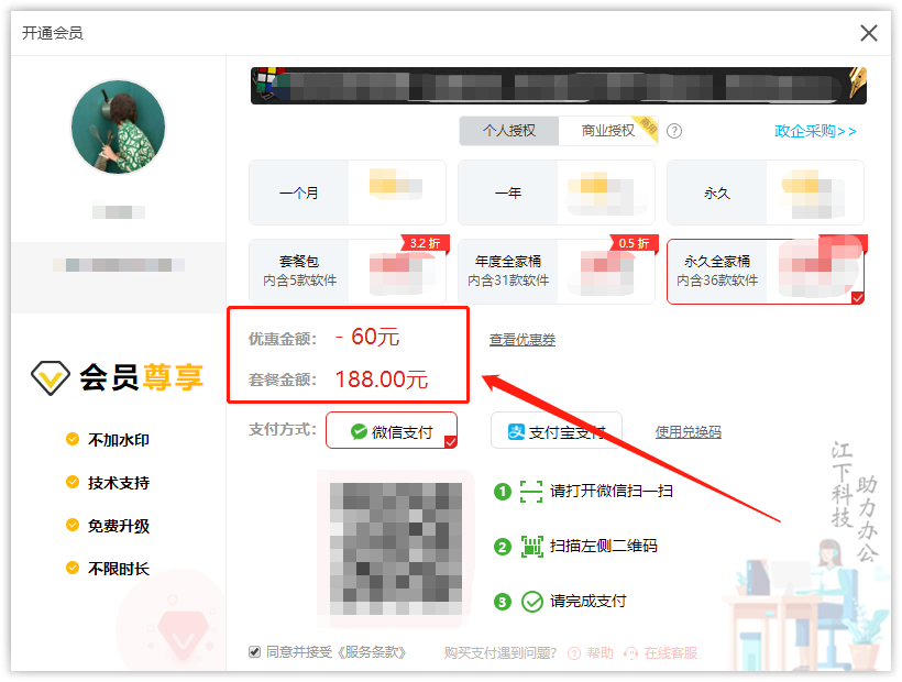 成功支付后会员立即生效,可终身使用全家桶里包含的电脑软件