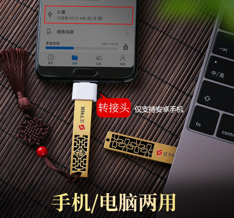 赠品② 江下限定款U盘一枚(32G+中国结+安卓手机转接头)