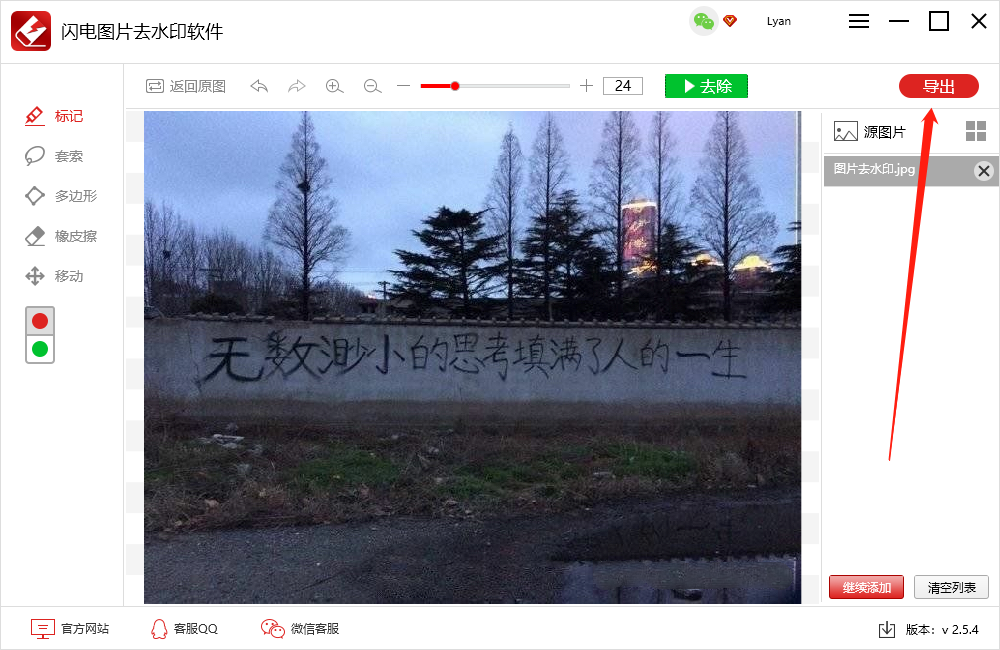 闪电图片去水印软件是一款十分方便实用的图片水印清除辅助工具,功能强大全面,简单易用。不仅可以清除图片上的水印,划痕,污渍,徽标等,还支持批量删除图片中的水印和日期。一键就能清除图片上的水印,让您轻松摆脱图片水印!