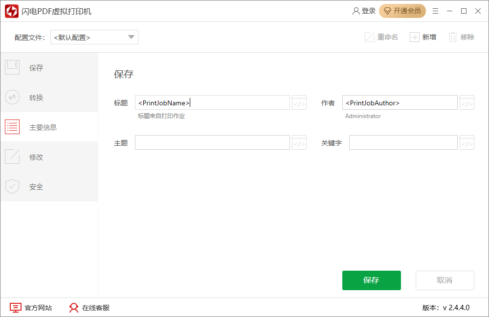 在【主要信息】界面中,我们还可设置文件的标题、作者、主题、关键字。